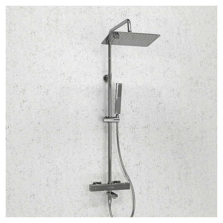 Душевая система Wasserkraft A199.069.103.010.CH Thermo предназначена для использования в ванных помещениях для подачи горячей и холодной воды. Модель оснащена верхним тропическим душем с насадкой "Ливневый дождь", регулируемой по высоте стойкой для душа, однофункциональной ручной лейкой с системой защиты от известковых отложений и шлангом, термостатическим картриджем, обеспечивающим поддержание необходимой температуры в независимости от давления воды, а также аэратором для создания мягкой ровной струи без разбрызгивания. Изделие выполнено из высококачественной латуни, отличающейся прочностью, долговечностью и устойчивостью к перепадам температур, верхний душ - из нержавеющей стали, шланг - из ПВХ. Особенности: