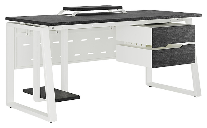 Офисный стол Кобор TS1-100/80 white/glazed используется в офисных помещениях и кабинетах руководителей. Модель оснащена опорами в форме наклонной трапеции. Каркас выполнен из металла, выкрашенного в цвет белый муар (RAL9016), столешница – из ламинированной древесно-стружечной плиты (ЛДСП) цвета черный дуб (H3178 ST37). Опции (заказываются отдельно):