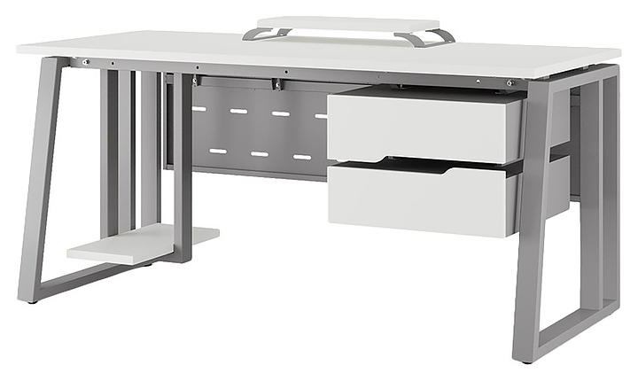 Офисный стол Кобор TS2-120/70 aluminum/premium используется в офисных помещениях и кабинетах руководителей. Модель оснащена усиленными вертикальными балками опорами в форме наклонной трапеции. Каркас выполнен из металла, выкрашенного в цвет алюминиевый металлик (RAL9006), столешница – из ламинированной древесно-стружечной плиты (ЛДСП) цвета белый премиум (W1000 ST9). Опции (заказываются отдельно):