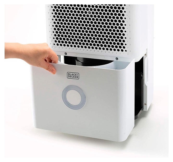 Осушитель воздуха Black+Decker BXDH12E предназначен для устранения избыточной влажности в офисах, гостиничных номерах, помещениях различных учреждений, а также домашних условиях. Модель оснащена компрессором, вентилятором, крышкой с воздухозаборной решеткой и фильтром на задней стенке, воздуховыводящей решеткой на фронтальной стенке, расположенной в верхней части панелью управления с функциональными сенсорными клавишами, светодиодными цифровым дисплеем и индикаторами. Вертикально ориентированный корпус прямоугольного сечения выполнен из ударопрочного белого пластика с глянцевой поверхностью, верхняя панель – из полимера черного цвета. В комплект поставки входят съемный фронтальный резервуар для конденсата и дренажная трубка. Особенности: