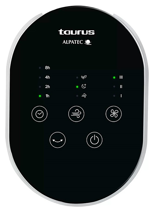 Вентилятор Taurus Babel Infinite предназначен для улучшения микроклимата путем создания направленной циркуляции воздушных потоков в офисах, гостиничных номерах, помещениях различных учреждений, а также домашних условиях. Модель оснащена электродвигателем постоянного тока, устойчивым основанием круглой формы, воздухозаборной решеткой с фильтром на задней стенке, воздухопроводящей решеткой на фронтальной стенке, расположенной сверху панелью управления с функциональными сенсорными клавишами и светодиодными индикаторами, пульт – мембранной клавиатурой. Вертикально ориентированный корпус прибора овального сечения и пульт прямоугольной формы выполнены из ударопрочного белого пластика, фронтальная и верзняя панели – из полимера черного цвета. В комплект поставки входит инфракрасный пульт дистанционного управления. Особенности:
