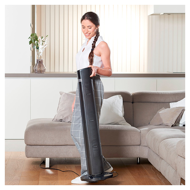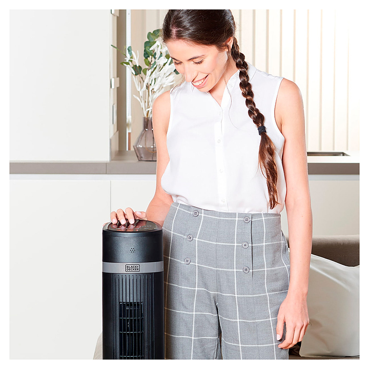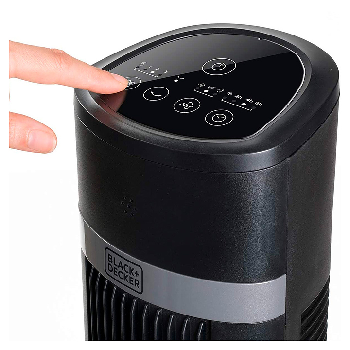 Вентилятор Black+Decker BXEFT50E предназначен для улучшения микроклимата путем создания направленной циркуляции воздушных потоков в офисах, гостиничных номерах, помещениях различных учреждений, а также домашних условиях. Модель оснащена устойчивым нескользящим основанием круглой формы, воздухозаборной решеткой на задней стенке, воздухопроводящей решеткой на фронтальной стенке, расположенной сверху панелью управления с функциональными сенсорными клавишами и светодиодными индикаторами, пульт – мембранной клавиатурой. Вертикально ориентированный корпус прибора и корпус пульта прямоугольной формы выполнены из ударопрочного черного пластика. В комплект поставки входит инфракрасный пульт дистанционного управления. Особенности: