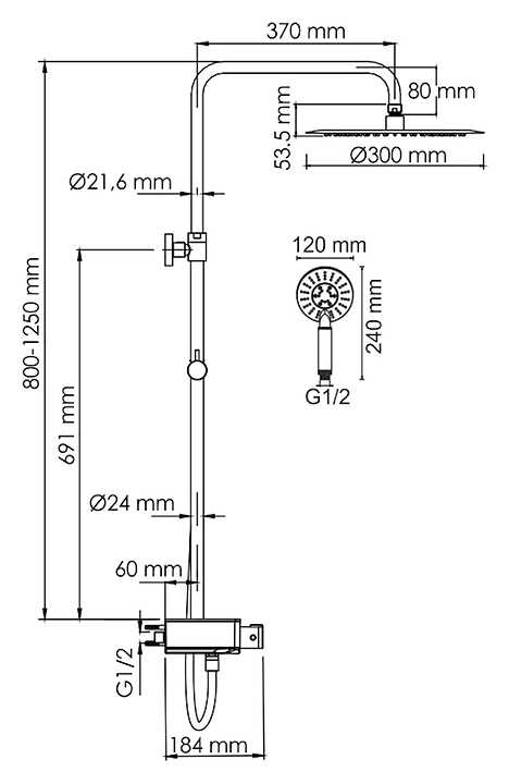 Душевая система с термостатическим смесителем Wasserkraft A113.116.058.CH Thermo хром