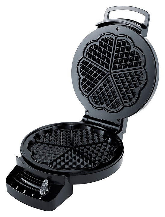 Вафельница Steba WE 1 используется в отелях, офисах, а также домашних условиях для приготовления венских вафель в форме сердечка. Модель оснащена кабелем питания с вилкой и электромеханической панелью управления. Корпус выполнен из прочного пластика черного цвета, жарочные поверхности – из металла с антипригарным покрытием.