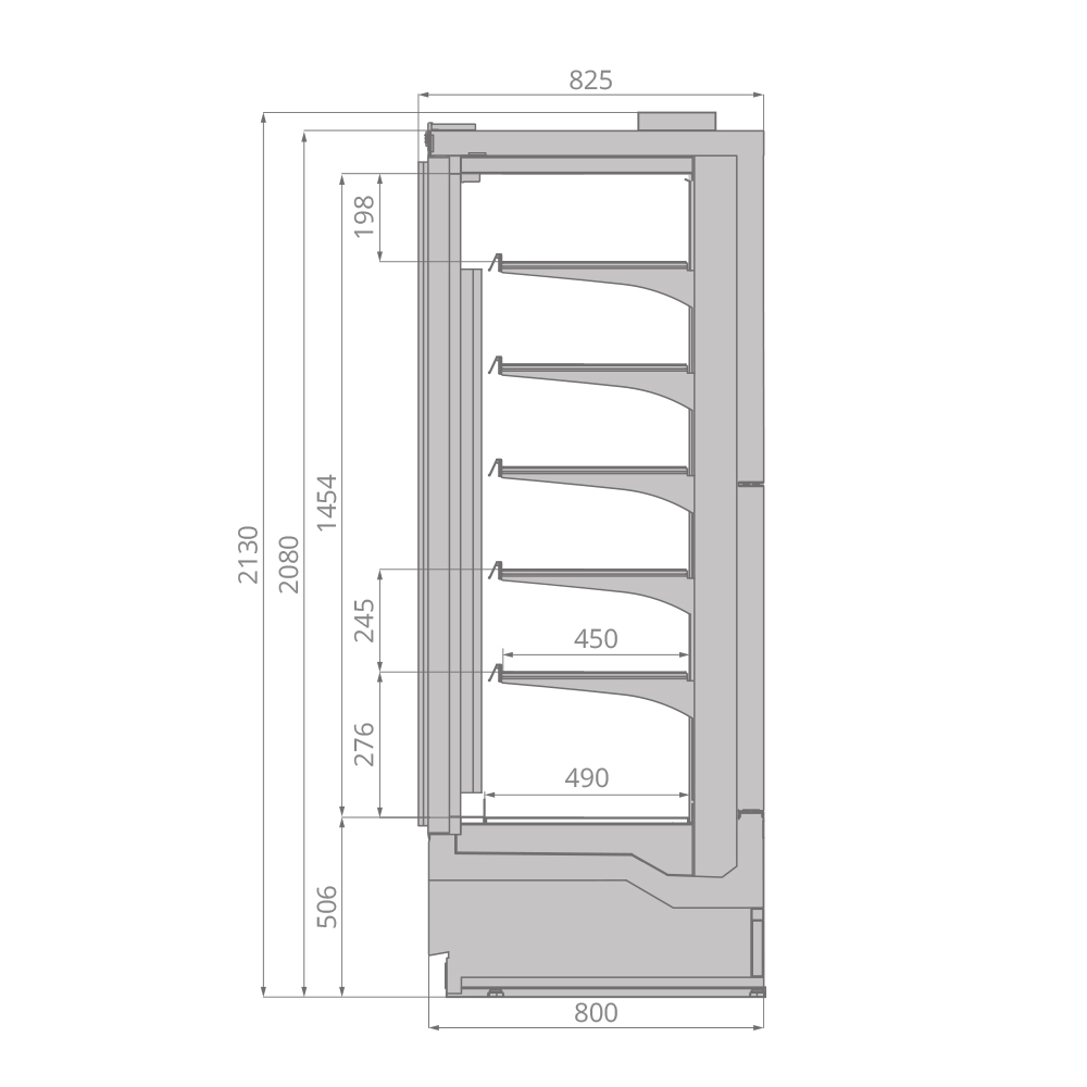 Холодильная горка Brandford Odissey Plug-in 125 предназначена для демонстрации, охлаждения и кратковременного хранения гастрономических товаров на предприятиях общественного питания и торговли. Модель оснащена 5 рядами регулируемых полок с ценникодержателями, вертикальной светодиодной подсветкой кабинета, равномерно освещающей продукты на всех уровнях и дверьми с двухкамерными стеклопакетами и хорошим обзором для визуального расширения фронтальной выкладки. В комплект поставки входят боковины. Модель доступна в 12 стандартных цветовых исполнениях фронтальной панели по таблице RAL: 1013, 1023, 2004, 3020, 5010, 6018, 7011, 7016, 7040, 8017, 9005 и 9016. Особенности: