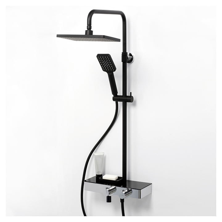Душевая система с термостатическим смесителем Wasserkraft A11401 Thermo черный soft-touch, хром