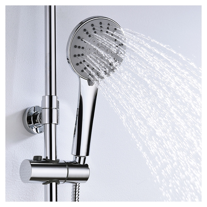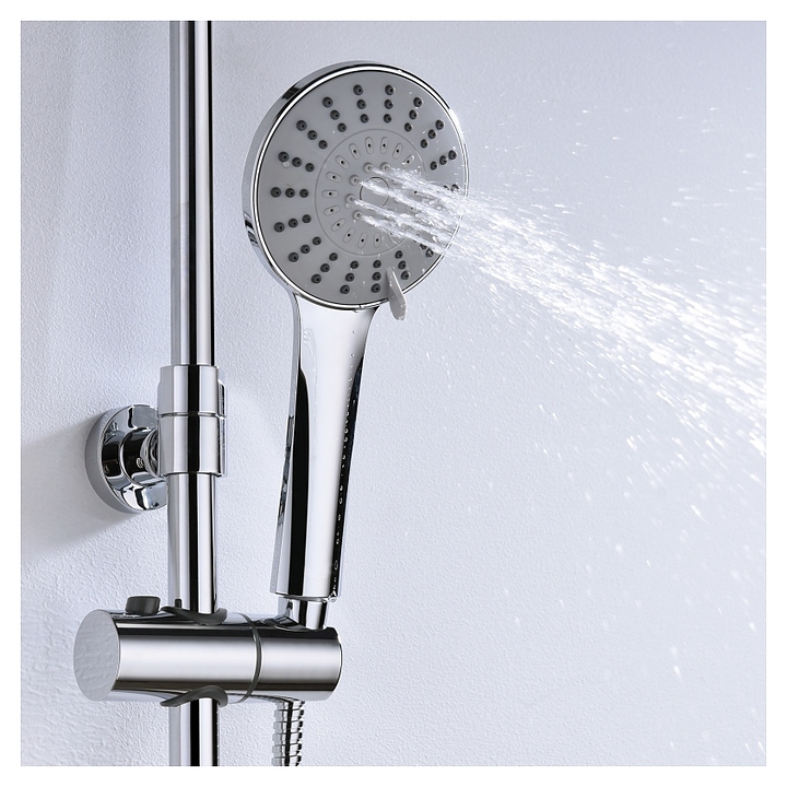Душевая система Wasserkraft A16601 предназначена для использования в ванных помещениях для подачи горячей и холодной воды. Модель оснащена смесителем для ванны с коротким изливом, круглым верхним тропическим душем с насадкой "Ливневый дождь", регулируемой по высоте стойкой для душа, круглой пятифункциональной ручной лейкой с системой защиты от известковых отложений и шлангом, керамическим картриджем, обеспечивающим плавный ход рычага смесителя, контроль и точность при выборе напора и температуры воды, а также аэратором для создания мягкой ровной струи без разбрызгивания. Изделие выполнено из высококачественной латуни, отличающейся прочностью, долговечностью и устойчивостью к перепадам температур, верхний душ - из ABS-пластика, шланг - из металла. Особенности: