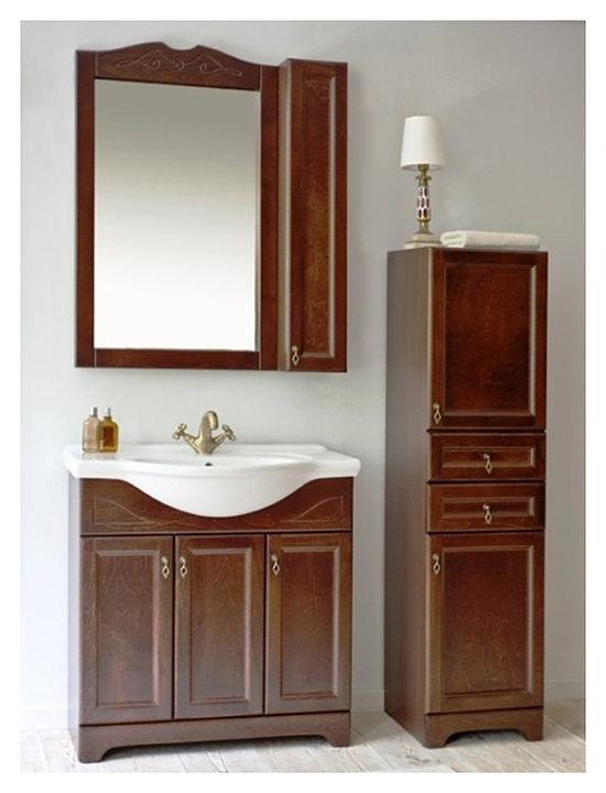 Правосторонний шкаф-пенал ORANGE Классик F7-40PE1 дополнит интерьер любой ванной комнаты. Модель оснащена 2 дверцами, 2 выдвижными ящиками с механизмом плавного закрывания и 2 полками внутри. Корпус выполнен из ДСП, фасад - из массива бука с лаковым покрытием. В комплект поставки входят 2 полки и фурнитура. Дополнительные характеристики: