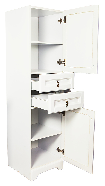 Правосторонний шкаф-пенал ORANGE Классик F7-40PE3 дополнит интерьер любой ванной комнаты. Модель оснащена 2 дверцами, 2 выдвижными ящиками с механизмом плавного закрывания и 2 полками внутри. Корпус выполнен из ДСП, фасад - из массива бука с эмалевым покрытием. В комплект поставки входят 2 полки и фурнитура. Дополнительные характеристики: