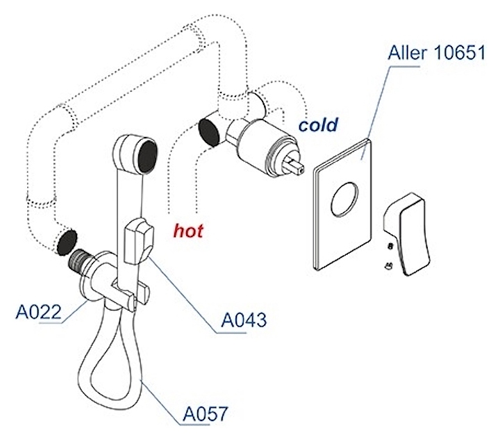 Душ гигиенический встраиваемый Wasserkraft A010657 шланг 120 см, хром