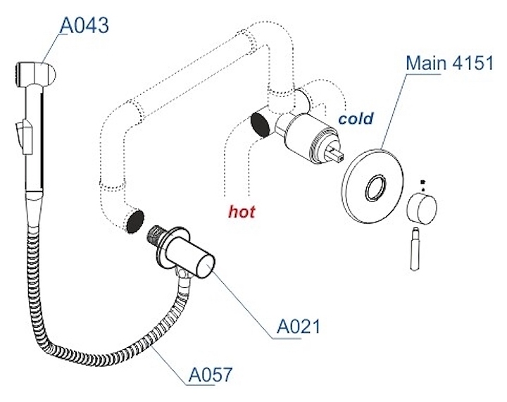 Душ гигиенический встраиваемый Wasserkraft A14157 шланг 120 см, хром
