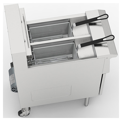 Напольная фритюрница REDGASTRO OFE-H213 используется на предприятиях пищевой промышленности, общественного питания и торговли для приготовления картофеля-фри и других блюд во фритюре. Модель оснащена 2 открытыми прямоугольными ваннами, техническим отделением с распашной дверью, выдвижным дренажным поддоном и кнопочной панелью управления с цифровым дисплеем. Корпус выполнен из высококачественной нержавеющей стали. В комплект поставки входят 2 решетчатые корзины с рукояткам из высококачественной нержавеющей стали AISI 201. Особенности: