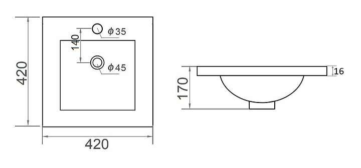 Раковина ORANGE B03-410w 42х42 см, фарфор