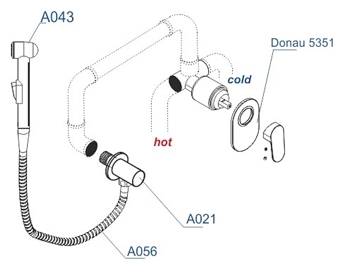 Душ гигиенический встраиваемый Wasserkraft A15356 шланг 100 см, хром