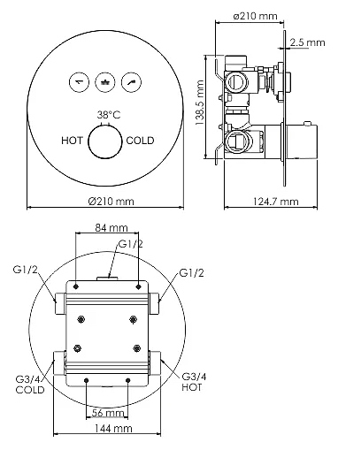 Встраиваемый душевой комплект Wasserkraft A175817 Thermo используется в ванных комнатах. Модель оснащена круглым верхним тропическим душем, кронштейном для верхнего душа, трехрежимным ручным душем с душевым шлангом, изливом, смесителем, термостатическим картриджем, обеспечивающим поддержание необходимой температуры в независимости от давления воды, а также аэратором для создания мягкой ровной струи без разбрызгивания. Изделие выполнено из латуни, отличающейся прочностью, долговечностью и устойчивостью к перепадам температур. В комплект поставки входит скрытая часть для установки. Комплектация: