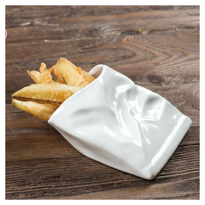 Конверт для картошки фри P.L. Proff Cuisine 81223267 "Мятый" предназначен для профессионального использования в ресторанах. Посуда изготавливается из профессионального твердого фарфора. Особенности: