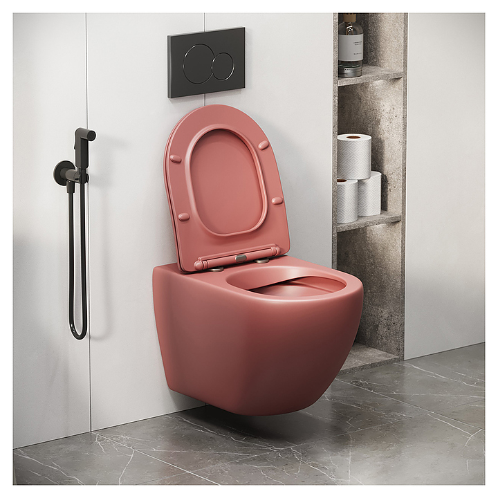 Унитаз подвесной с крышкой-сиденьем Grossman Color GR-4411PIMS розовый матовый
