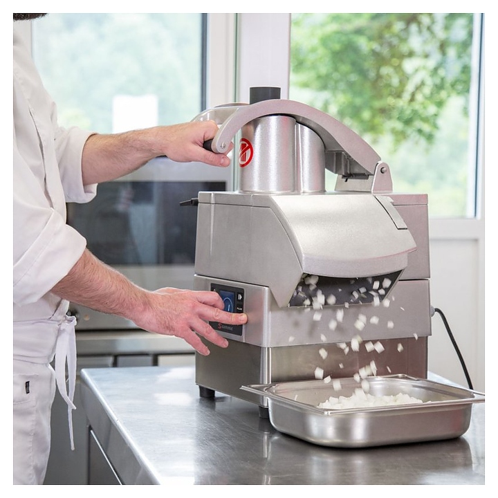Овощерезка Sammic CA-3V предназначена для нарезки овощей и фруктов на предприятиях общественного питания и торговли. Модель оснащена бесщеточным мотором и интуитивно понятной электронной панелью управления. Корпус выполнен из нержавеющей стали, головка - из алюминия для пищевой промышленности. Особенности: