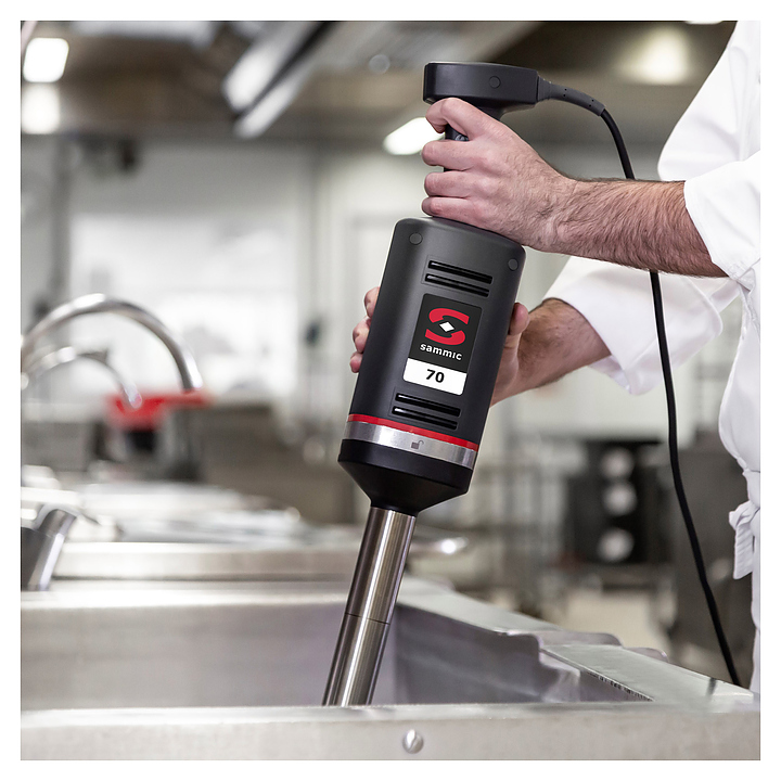 Погружной блендер Sammic XM-72 предназначен для взбивания, смешивания, измельчения продуктов питания на предприятиях общественного питания и торговли. Модель оснащена двухцветным световым индикатором, указывающим состояние аппарата и эргономичной противоскользящей ручкой. Y-образный нож с долговечной режущей кромкой выполнен из закаленной стали. Особенности: