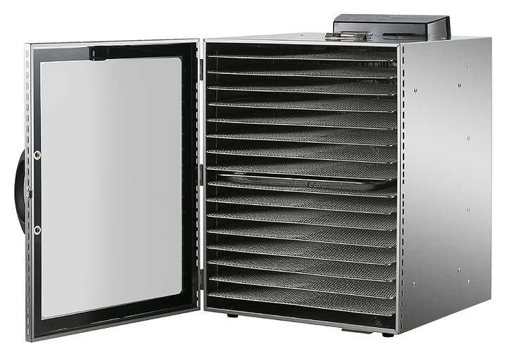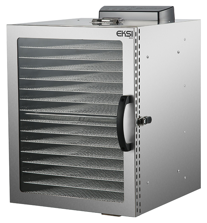 Дегидратор Eksi EKD-16G предназначен для сушки фруктов, овощей и грибов на предприятиях общественного питания и торговли. Модель оснащена цифровой панелью управления, таймером на 12 часов и 16 решетками. Корпус выполнен из нержавеющей стали. Характеристики: