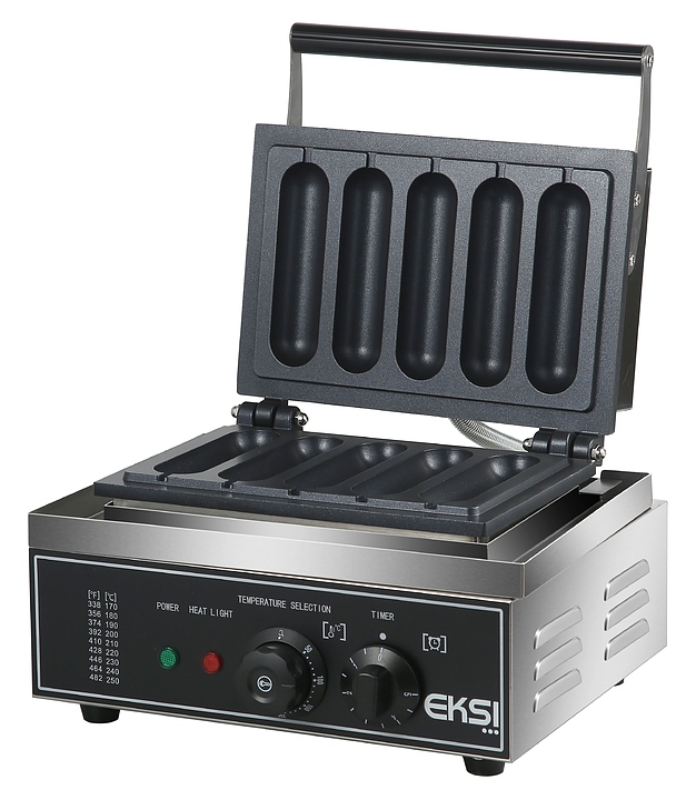 Аппарат для корн-догов EKSI ECD-5 используется на предприятиях общественного питания и торговли для приготовления хрустящих сосисок в тесте. Модель оснащена регулятором температуры и таймером. Корпус выполнен из нержавеющей стали, рабочая поверхность - из алюминия. Дополнительные характеристики: