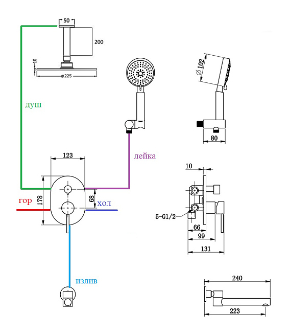 Комплект душевой Bronze de Luxe Scandi 14582/1B потолочный верхний душ