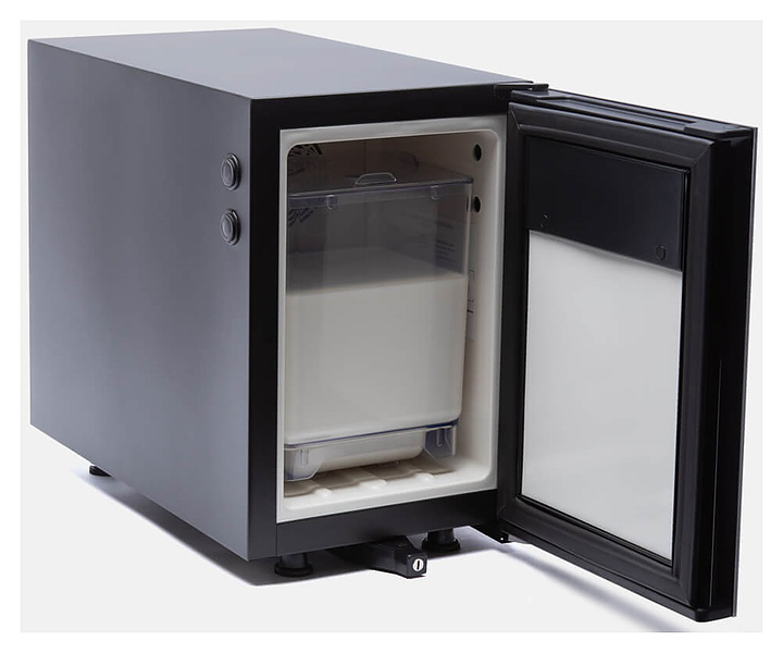 Охладитель молока ICEBOX MC8DBST используется совместно с кофемашинами в кофейнях, барах и ресторанах для кратковременного хранения и охлаждения молока для приготовления различных кофейных напитков. Модель оснащена внутренней светодиодной подсветкой, запираемой дверью со встроенным замком, цифровым регулятором температуры с сенсорным экраном и ЖК-дисплеем. Корпус имеет порошковое покрытие, устойчивое к внешнему воздействию. В комплект поставки входит контейнер для молока на 4,5 л. Особенности: