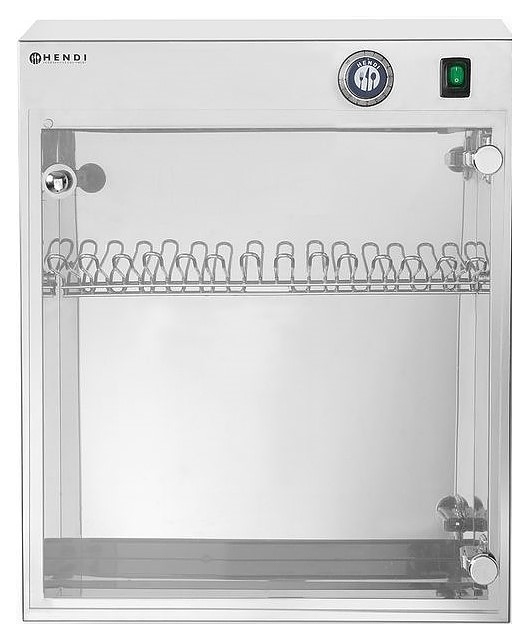 Стерилизатор для ножей HENDI 281246 используется на предприятиях общественного питания и торговли. Модель оснащена таймером с индикатором. Корпус и внутренний стелаж выполнены из нержавеющей стали, дверца - из прозрачного плексигласа. Дополнительные характеристики: