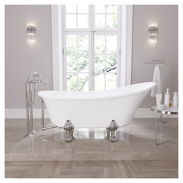 Отдельностоящая ванна Grossman Retro GR-1002M дополнит интерьер ванной комнаты. Модель можно установить в любом месте. Антибактериальное покрытие предотвращает размножение бактерий и обеспечивает гигиеничность использования. Прочный каркас обеспечивает стабильность и надежность конструкции, четырехслойная армировка гарантирует стойкость к воздействию внешних факторов. Изделие выполнено из акрила, который быстро прогревается, обладает небольшим весом и высокими шумоизоляционными характеристиками, а также устойчив к механическим повреждениям. В комплект поставки входят сифон клик-клак и слив-перелив. Дополнительные характеристики: