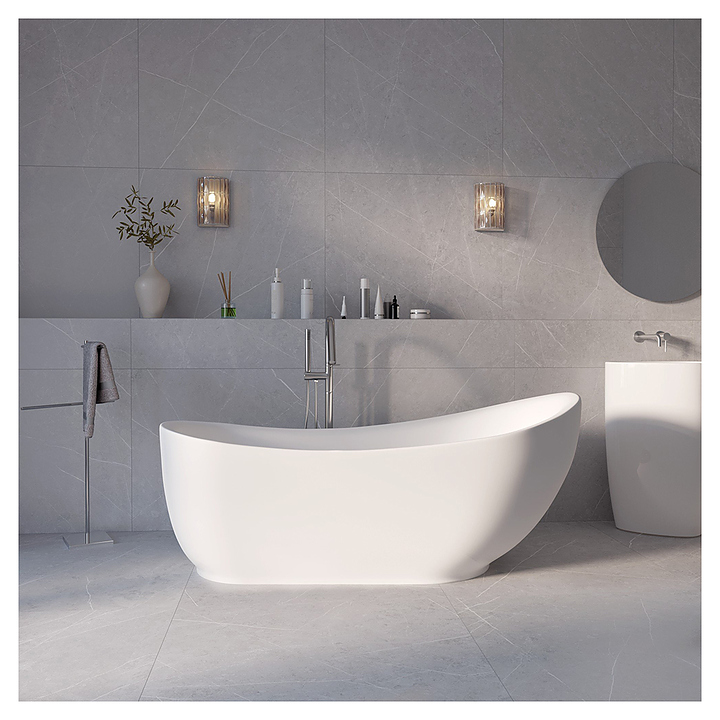 Отдельностоящая ванна Grossman Style GR-2303M дополнит интерьер ванной комнаты. Модель можно установить в любом месте. Антибактериальное покрытие предотвращает размножение бактерий и обеспечивает гигиеничность использования. Прочный каркас обеспечивает стабильность и надежность конструкции, четырехслойная армировка гарантирует стойкость к воздействию внешних факторов. Изделие выполнено из акрила, который быстро прогревается, обладает небольшим весом и высокими шумоизоляционными характеристиками, а также устойчив к механическим повреждениям. В комплект поставки входят сифон клик-клак и слив-перелив. Дополнительные характеристики: