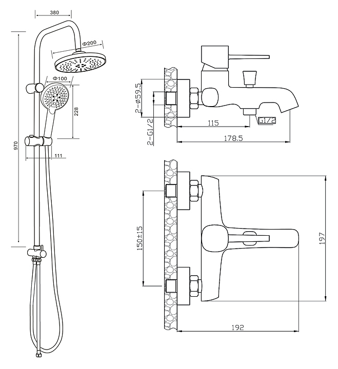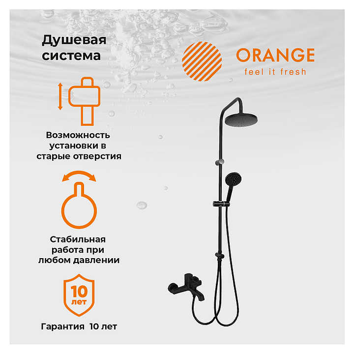 Душевая система ORANGE Karl M05-932b предназначена для использования в ванных помещениях для подачи горячей и холодной воды. Модель оснащена смесителем для ванны, круглым верхним тропическим душем с силиконовыми наконечниками для быстрого удаления известкового налета, штангой, регулируемым держателем для ручного душа, круглой ручной лейкой с системой защиты от известковых отложений и душевым шлангом в металлической оплётке с защитой от перекручивания. Керамический картридж обеспечивает плавный ход рычага смесителя, контроль и точность при выборе напора и температуры воды, а аэратор создает мягкую ровную струю без разбрызгивания. Изделие выполнено из латуни, отличающейся прочностью, долговечностью и устойчивостью к перепадам температур. Особенности: