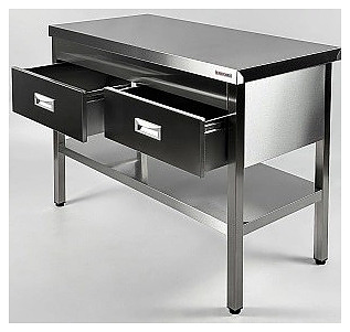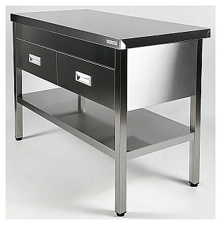 Производственный закрытый стол Restoinox СПЯ-12/7-П серии 700 предназначен для обработки продуктов питания, раскатки теста и хранения кухонного инвентаря, также для размещения малогабаритного оборудования на предприятиях общественного питания и торговли. Модель оснащена 2 выдвижными ящиками и сплошной полкой из нержавеющей стали. Ножки выполнены из квадратного профиля нержавеющей стали Aisi 430 40x40 мм, рабочая поверхность и решетка - из нержавеющей стали Aisi 430, столешница усилена листом ЛДСП. Особенности: