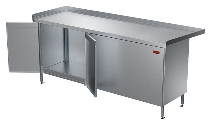 Производственный стол Проммаш СПИС-2000/700 используется на морских судах, пароходах, пассажирских лайнерах и т.д. для разделки и обработки пищевых продуктов, а также для расстановки и хранения посуды и кухонного инвентаря. Модель оснащена 2 распашными дверьми и бортами с 3-х сторон. Оборудование выполнено из нержавеющей стали 12Х18H10T. Особенности: