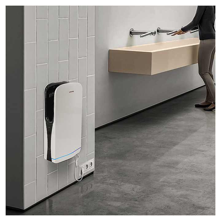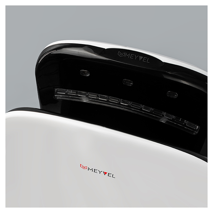 Сушилка для рук MEYVEL MH10-1800P1 используется в гостиницах, отелях, бассейнах, фитнес-клубах и спа-центрах с высокой проходимостью. Прибор оснащена HEPA-фильтром, каплесборником с защитой от перелива в виде звукового сигнала и LED-индикации и системой автоматического включения и выключения. Корпус выполнен из ABS-пластика белого цвета. Особенности: