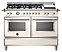 Варочный центр Bertazzoni HER126G2EAVT предназначен для приготовления большого ассортимента блюд в гостиничном и ресторанном бизнесе, на предприятих пищевой промышленности, общественного питания и в домашних условиях. Модель оснащена комбинированной варочной поверхностью с задним бортом, 2 духовыми шкафами с откидными дверьми, горизонтальными рукоятками и обзорными окнами, панелью управления с поворотными переключателями и фирменным аналоговым термометром. Решетки выполнены из чугуна, панель - из нержавеющнй стали. Режимы работы духовых шкафов: