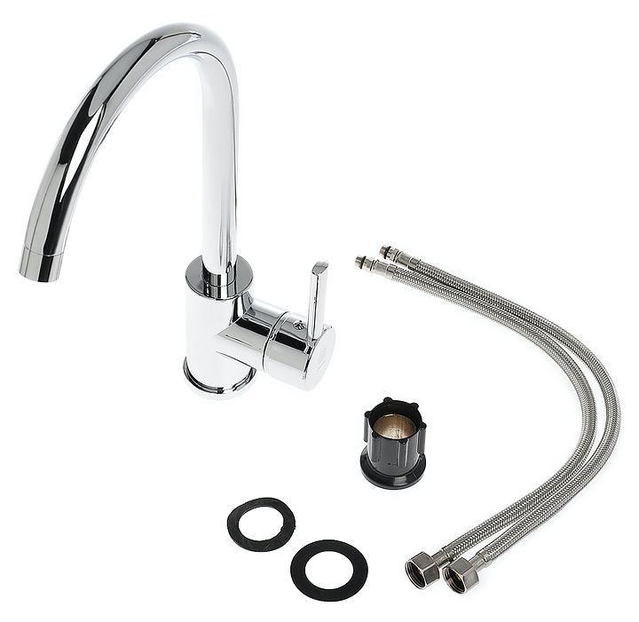 Смеситель ORANGE 1Life (OneLife by Orange) P04-001cr предназначен для подачи горячей и холодной воды в кухонных помещениях. Модель оснащена высоким поворотным изливом, керамическим картриджем, обеспечивающим плавный ход рычага смесителя, контроль и точность при выборе напора и температуры воды, а также встроенным аэратором с функцией легкого очищения от известкового налета, который экономит воду, насыщает ее воздухом и создает мягкую струю без брызг. Изделие выполнено из запатентованного высокотехнологичного полимера. В комплект поставки входят смеситель, гибкая подводка и крепления. Особенности: