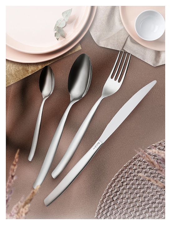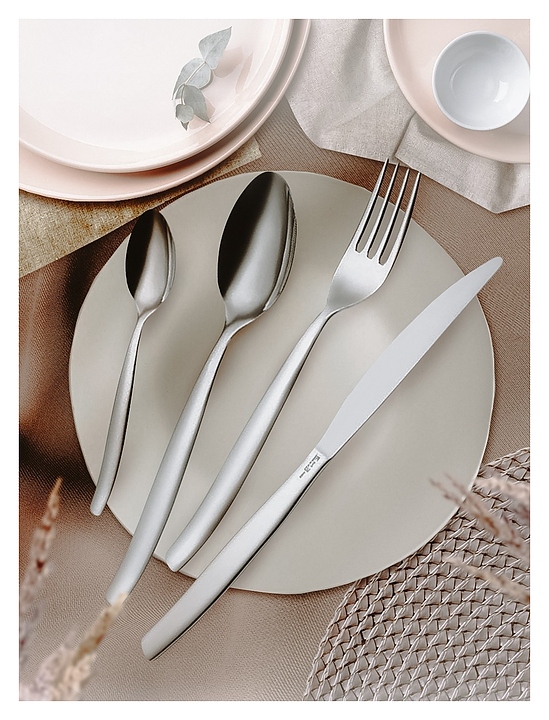 Набор столовых приборов EME Shark P13BESH/CR используется на предприятиях общественного питания и в домашних условиях. Приборы, гармонично сочетающие в себе плавный дизайн и эргономичные изгибы, станут идеальным выбором для повседневного использования. Изделия выполнены из полированной нержавеющей стали 18/10. В комплект поставки входят 6 столовых ложек, 6 вилок, 6 столовых ножей и 6 чайных ложек. Особенности: