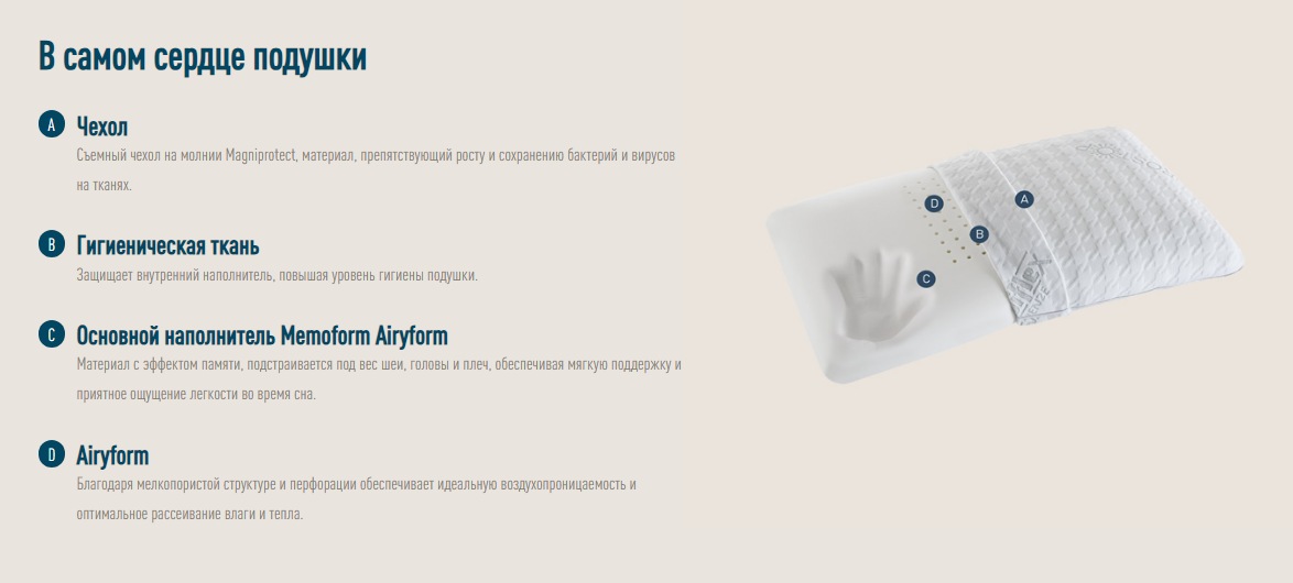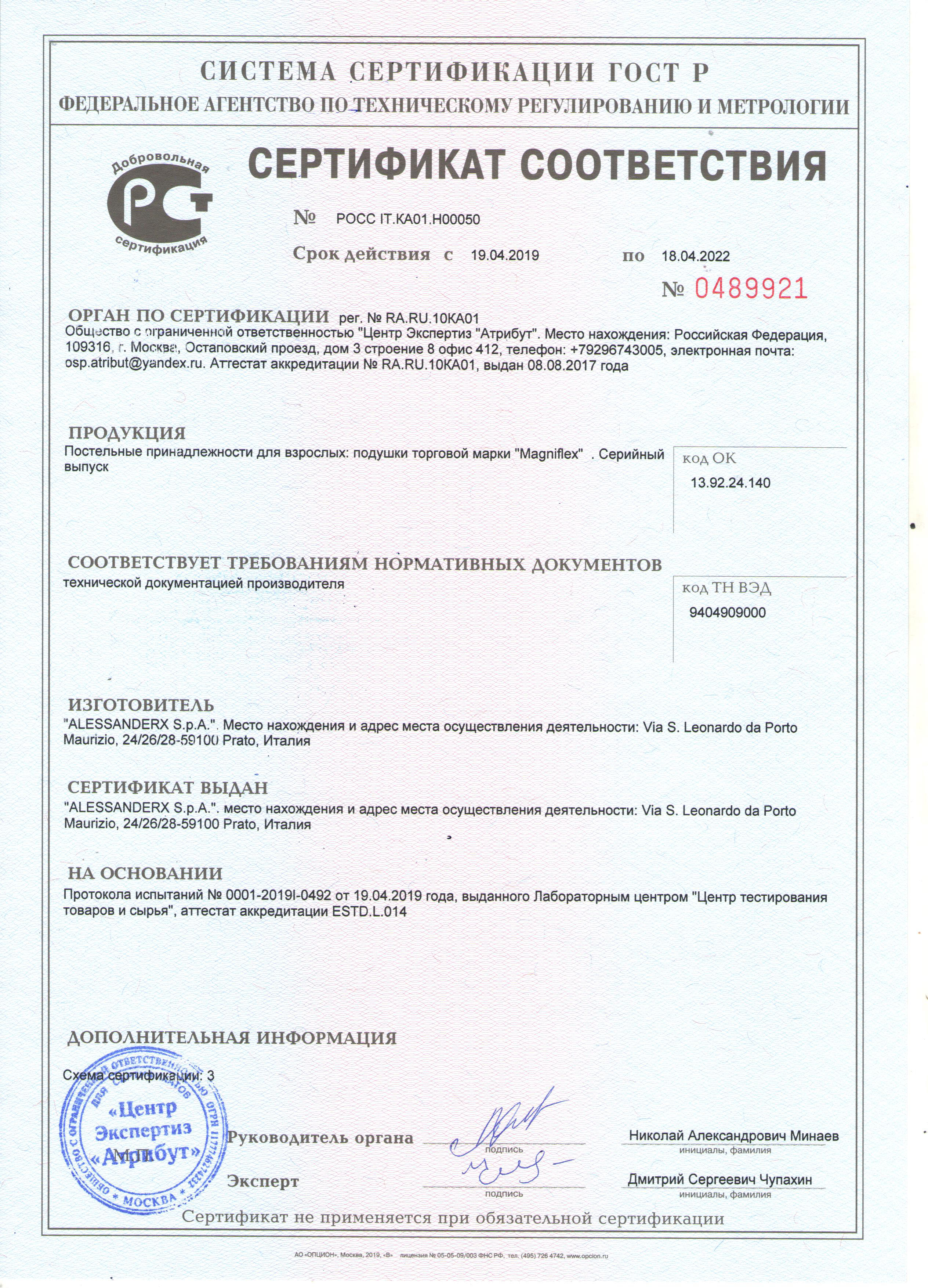 Итальянская компания Magniflex производит ортопедические матрасы и подушки. В процессе создания матрасов используется инновационное оборудование, новейшие научные достижения, в том числе передовые космические технологии НАСА, а также электронные системы сборки. |
