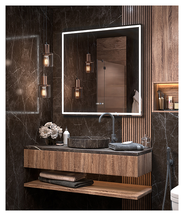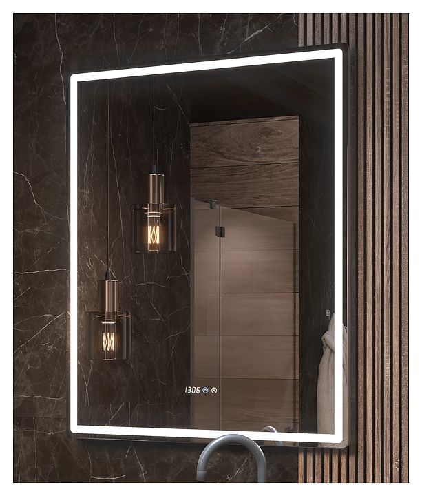 Зеркало VIGO Roberta Luxe выполнено в современном стиле и отлично дополнит интерьер любой ванной комнаты. Благодаря подвесной конструкции модель не занимает много места, что позволяет экономить пространство в ванной комнате. Зеркало оснащено LED-подсветкой, сенсорным управлением, встроенными часами и функцией антизапотевания с таймером отключения. Корпус выполнен из прочного ABS-пластика, за счет уникальной технологии производства изделие не подвержено ржавлению амальгамы, дымчатости и ухудшению отражающей способности в помещениях с высокой влажностью. Дополнительные характеристики: