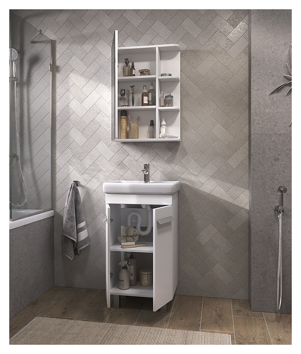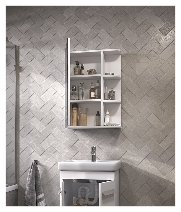 Левосторонний зеркальный шкаф VIGO Nova 500 дополнит интерьер ванной комнаты. Благодаря подвесной конструкции изделие не занимает много места, что экономит пространство и облегчает уборку. Модель оснащена распашной дверцей с доводчиком для плавного закрывания, 2 полками внутри и 2 открытыми в боковых частях. Корпус и внутренние полки выполнены из ЛДСП, фасад и внешние полки - из МДФ с высокоглянцевой плёнкой ПВХ. Дополнительные характеристики:
