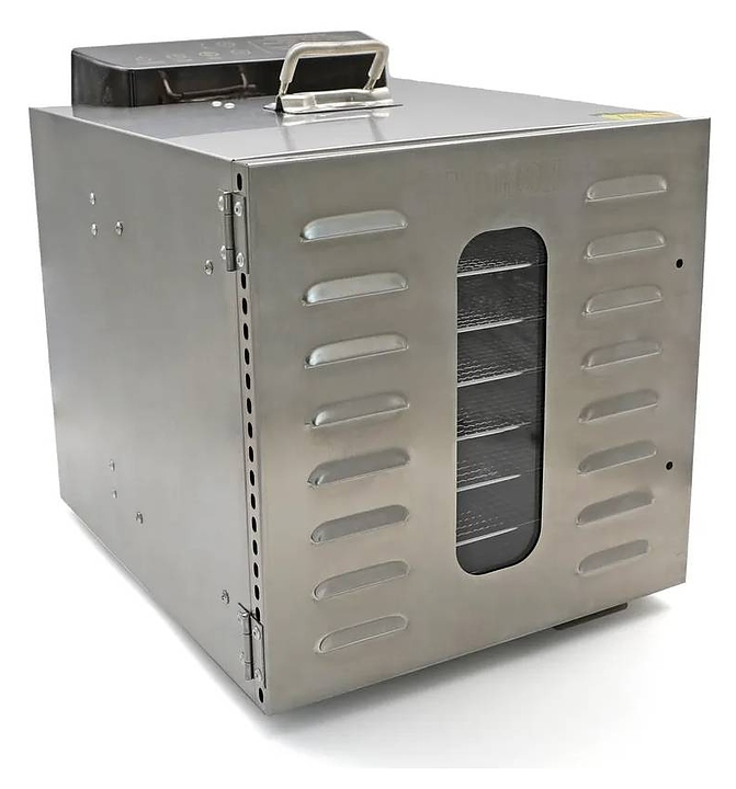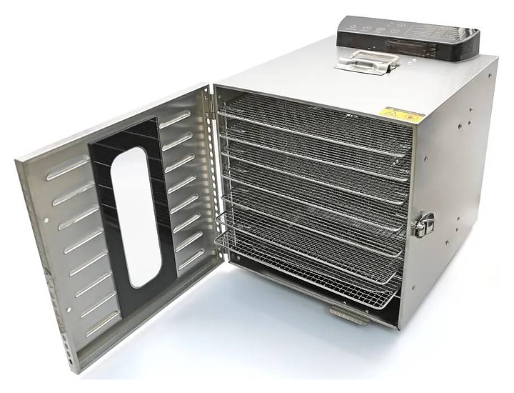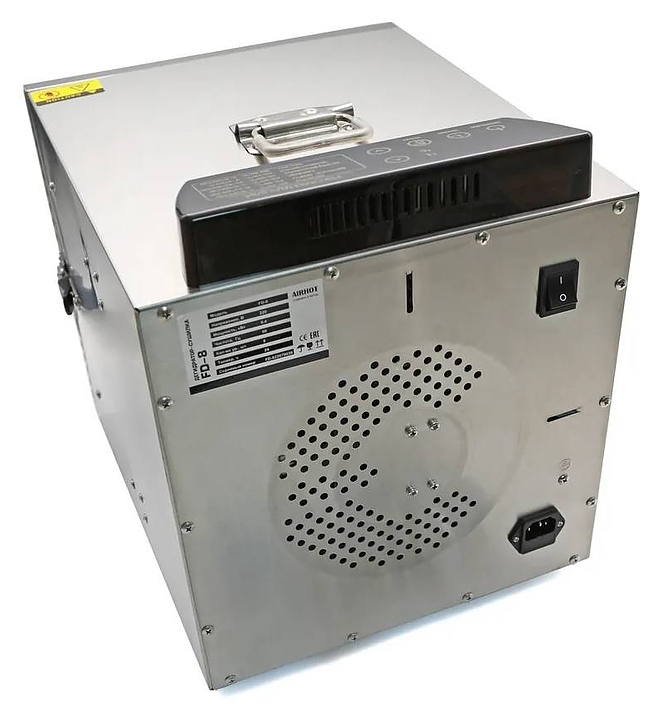 Дегидратор Airhot FD-8 используется на предприятиях общественного питания и торговли, в производственных цехах, а также в домашних условиях для сушки овощей, грибов, фруктов и ягод. Модель оснащена электронной панелью управления и вентилятором на задней части корпуса. Корпус выполнен из нержавеющей стали. В комплект поставки входят 8 подносов. Особенности: