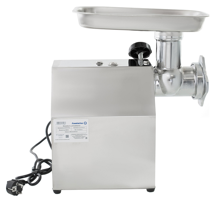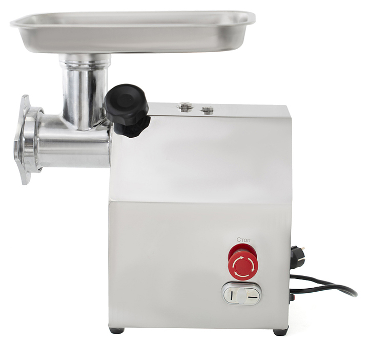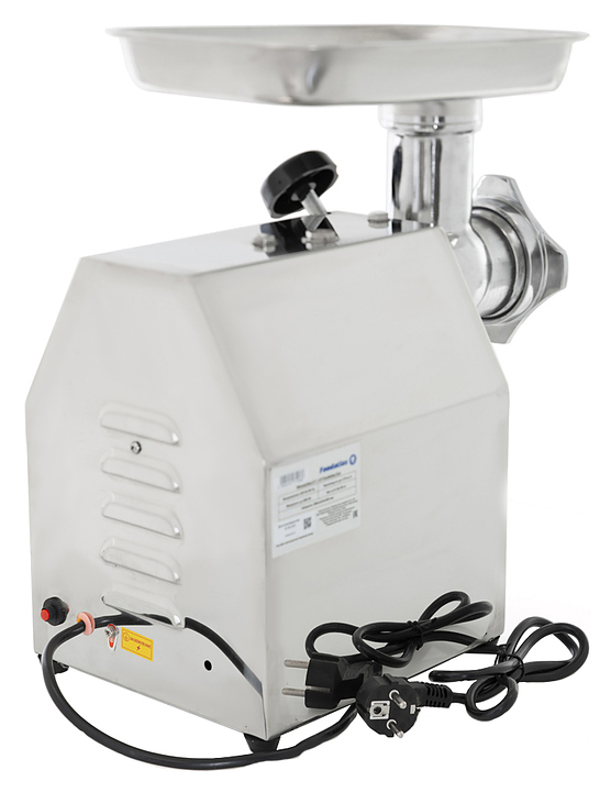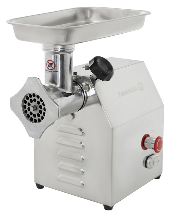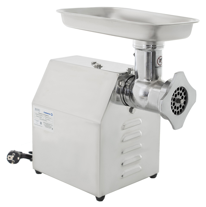 Мясорубка Foodatlas KY-12P Eco используется на предприятиях общественного питания и торговли для измельчения мяса и рыбы при производстве фарша. Модель оснащена панелью управления с электромагнитными кнопками. Цельный корпус выполнен из нержавеющей стали, нож - из стали 420, дополнительные насадки - из пластика. В комплект поставки входят шнек, нож, 2 решетки (6 и 8 мм) и 3 дополнительные насадки для колбас диаметром 12, 16 и 20 мм длиной 100 мм. Особенности: