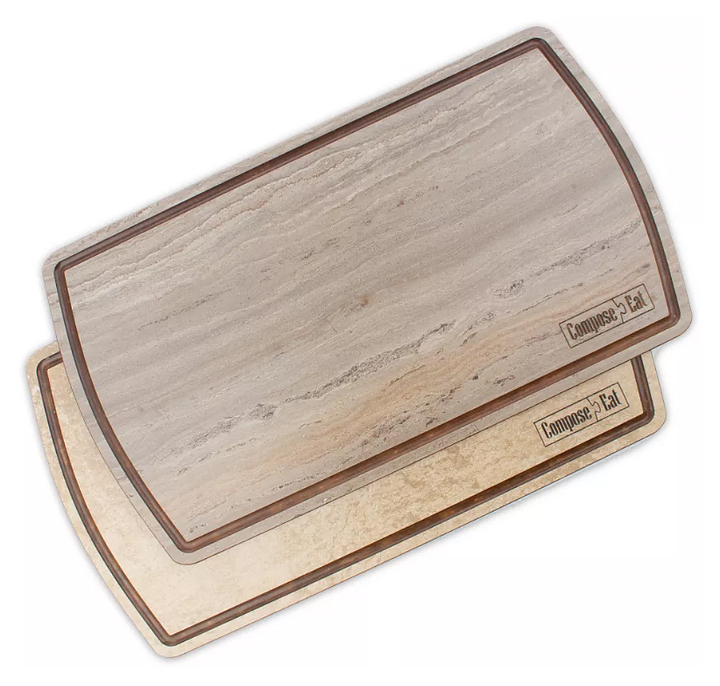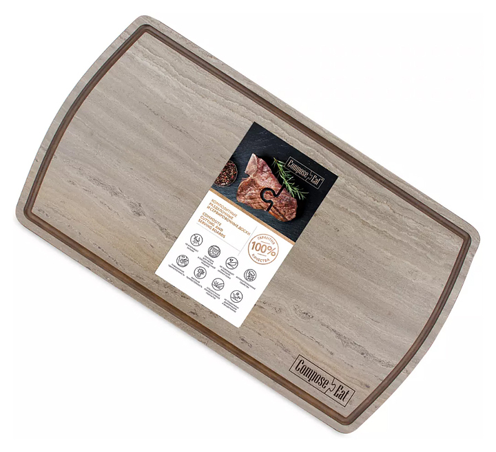Сервировочная доска ComposeEat DSJ37210406KL6 выполнена из бумажного композитного материала, сохраняющего целостность при падении, ударах и механической нагрузке, устойчивого к резким перепадам температур, не подверженному деформации, выцветанию, сколам, трещинам и механическим повреждениям. Модель оснащена желобом для слива жидкости и нескользящими силиконовыми ножками. Особенности: