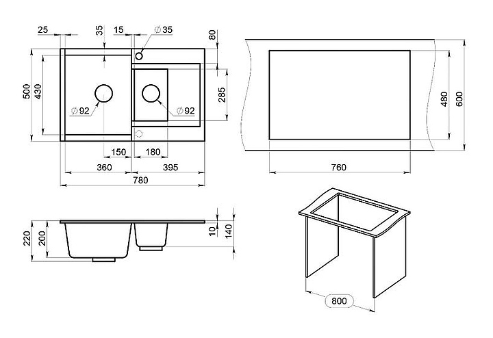 Мойка ESTETICA 7808 предназначена для рационального планирования рабочего места на кухне. Вместительная чаша большого размера и небольшая дополнительная чаша расположены параллельно друг другу. Крыло-сушилка служит подставкой для посуды и продуктов, возможна установка измельчителя. Изделие выполнено из кварца, который отличается способностью поглощать шум воды, стойкостью к действию моющих средств, экологичностью и долговечностью, разделочная доска - из ясеня. В комплект поставки входят слив-перелив, сифон и разделочная доска. Дополнительные характеристики: