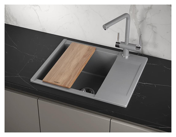 Мойка ESTETICA 6202 предназначена для рационального планирования рабочего места на кухне. Крыло-сушилка служит подставкой для посуды и продуктов. Модель подходит для установки кухонных измельчителей. Изделие выполнено из кварца, который отличается способностью поглощать шум воды, стойкостью к действию моющих средств, экологичностью и долговечностью, разделочная доска - из ясеня. В комплект поставки входят слив-перелив, сифон и разделочная доска. Дополнительные характеристики: