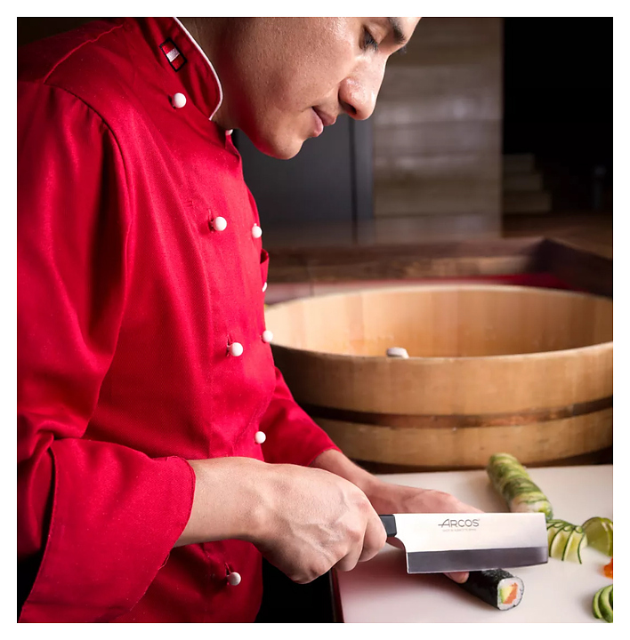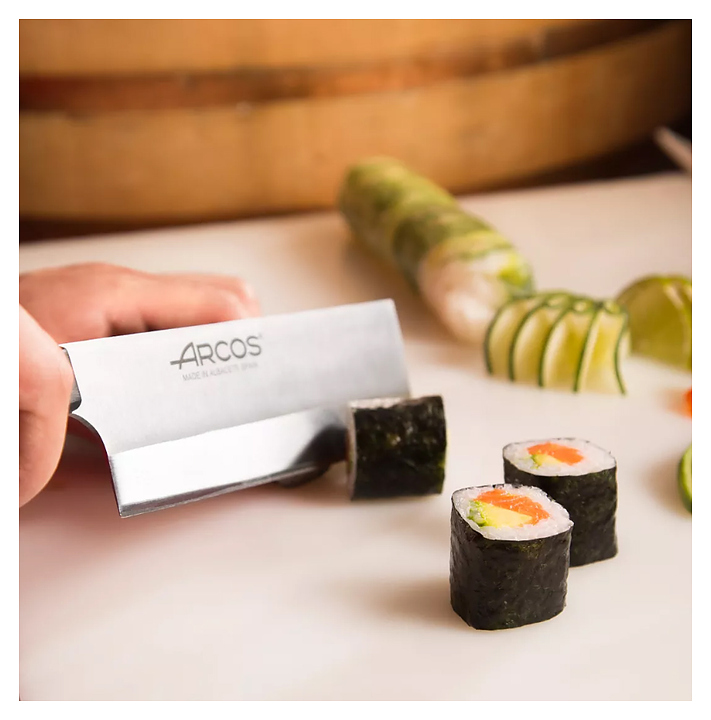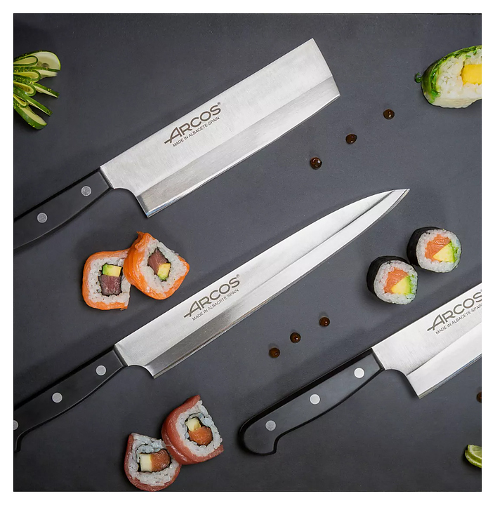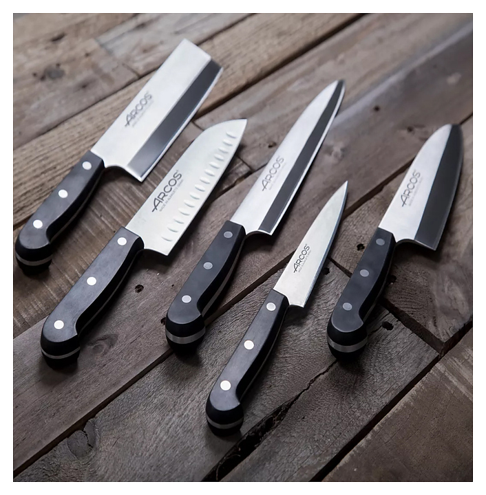 Испанская компания Arcos производит ножи для оснащения кухонь предприятий общественного питания и торговли, частных домов и квартир. Выпускаемые изделия оснащены эргономичной ручкой из полипропилена, устойчивого к ударам и перепадам температур, и лезвием, выполненным из эксклюзивной нержавеющей стали NITRUM, отличающейся повышенной прочностью. |
