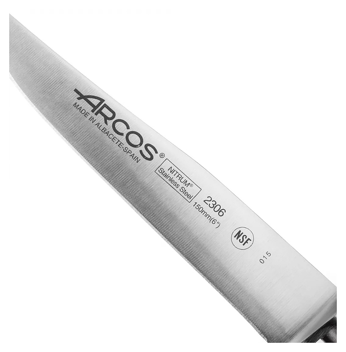 Испанская компания Arcos производит ножи для оснащения кухонь предприятий общественного питания и торговли, частных домов и квартир. Выпускаемые изделия оснащены эргономичной ручкой из полипропилена, устойчивого к ударам и перепадам температур, и лезвием, выполненным из эксклюзивной нержавеющей стали NITRUM, отличающейся повышенной прочностью. |