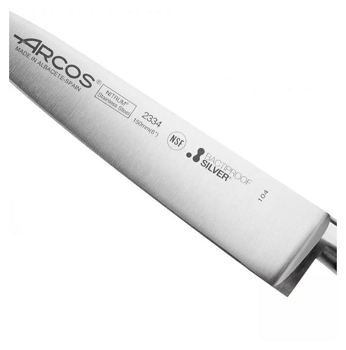 Поварской нож ARCOS Riviera Blanca 233424W используется на предприятиях общественного питания и торговли, а также в частных домах и квартирах. Кованое лезвие изготовлено из высококачественной нержавеющей стали NITRUM, эргономичная ручка - из полиоксиметилена. Особенности: