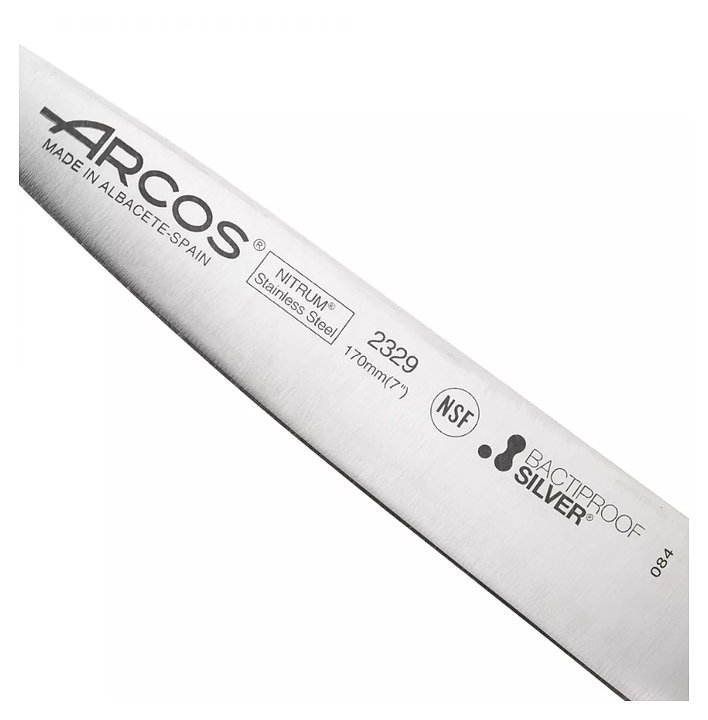 Испанская компания Arcos производит ножи для оснащения кухонь предприятий общественного питания и торговли, частных домов и квартир. Выпускаемые изделия оснащены эргономичной ручкой из полипропилена, устойчивого к ударам и перепадам температур, и лезвием, выполненным из эксклюзивной нержавеющей стали NITRUM, отличающейся повышенной прочностью. |