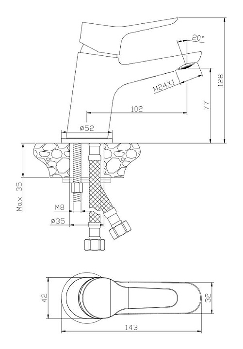 Смеситель для раковины OLIVE'S IBIZA 19100IB предназначен для подачи горячей и холодной воды в ванных помещениях. Однорычажное управление обеспечивает контроль и точность при выборе напора и температуры воды. Изделие выполнено из нержавеющей стали, отличающейся прочностью, долговечностью и устойчивостью к коррозии. Дополнительные характеристики:
